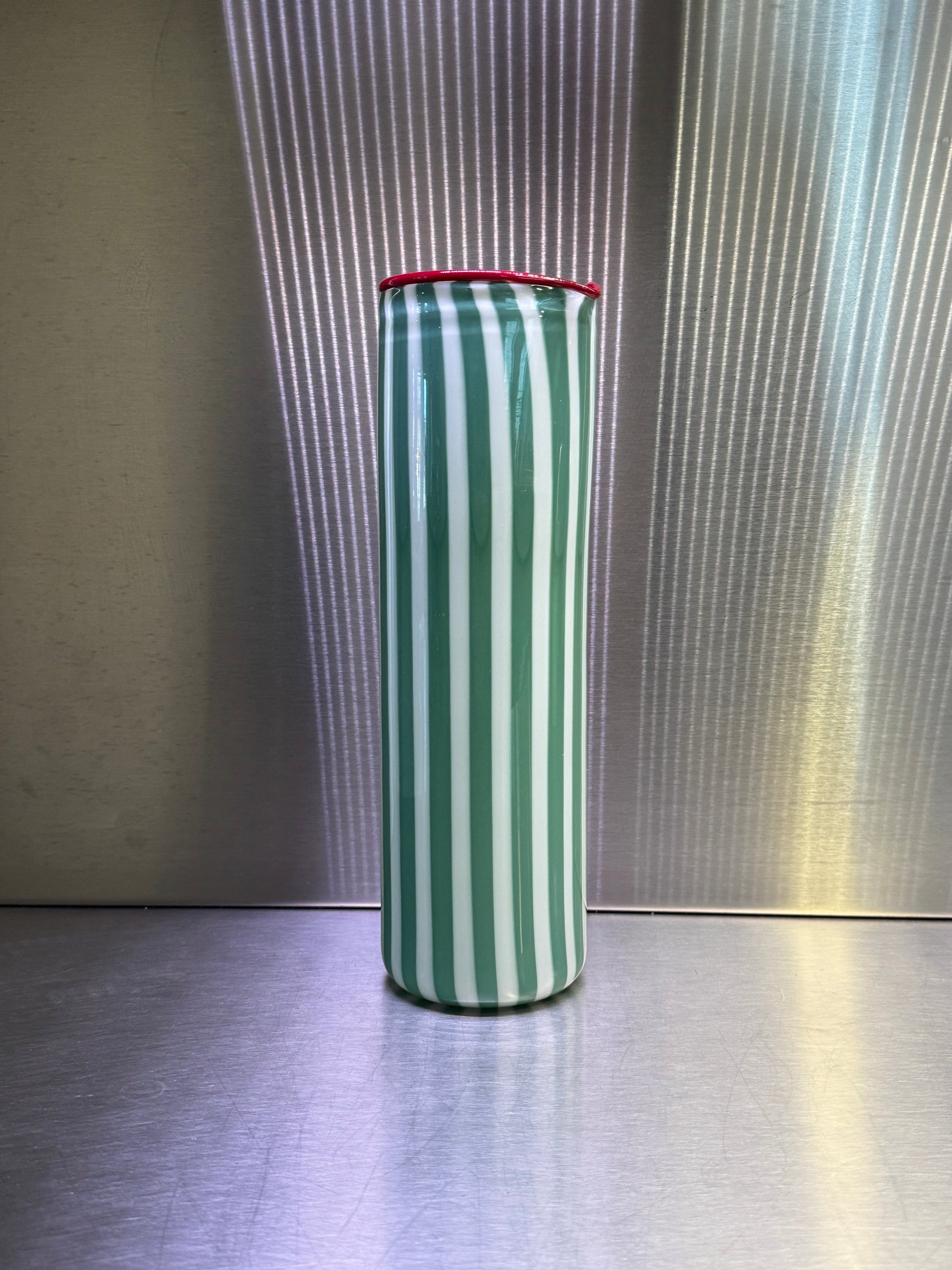 Colorful hand-blown opaque glass pitchers in the cane method. Realised by glassmakers in Murano Italy, available in 3 color variations. Each piece is unique and varies slightly in form and pattern but that is the beauty of handmade!